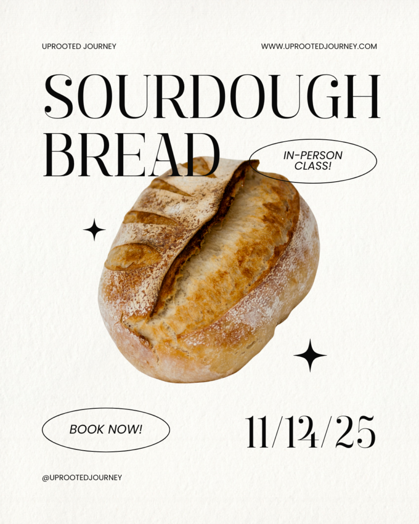 In this 3-hour hands-on workshop, you’ll learn the essentials of sourdough: starter care, mixing, stretch-and-folds, shaping, scoring, and baking. You’ll practice each step and head home with the skills (and dough!) to keep baking confidently. Your instructor, Geneve du Plessis, is the baker behind Uprooted Journey, a Rockwall micro bakery specializing in naturally leavened breads. She’s passionate about making sourdough approachable, fun, and something anyone can enjoy baking at home.