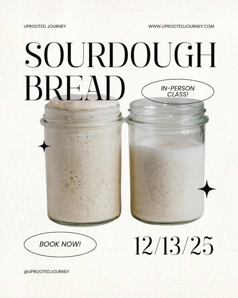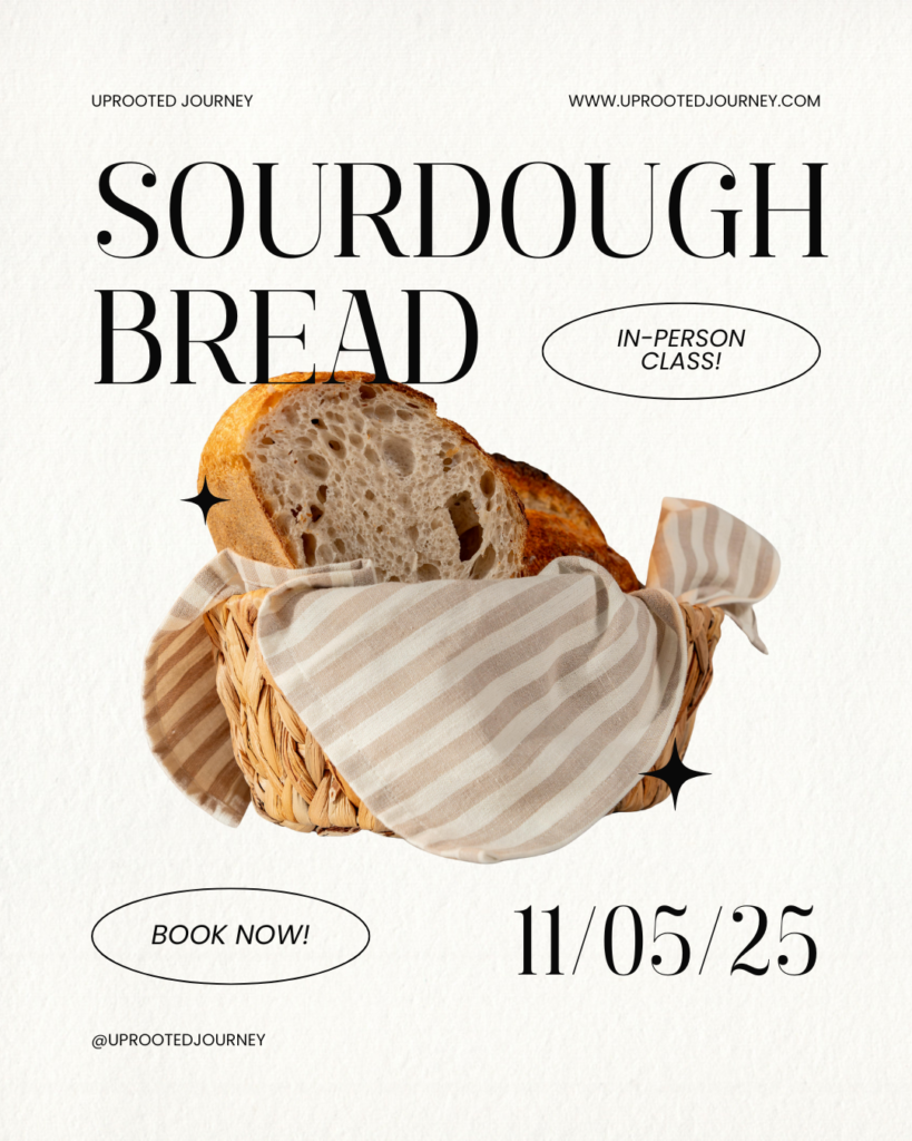Yes! Uprooted Journey is a home-based micro bakery, and workshops are hosted right from my kitchen. It’s the perfect cozy setting to learn sourdough in a real home environment, just like you’ll be baking in your own kitchen.